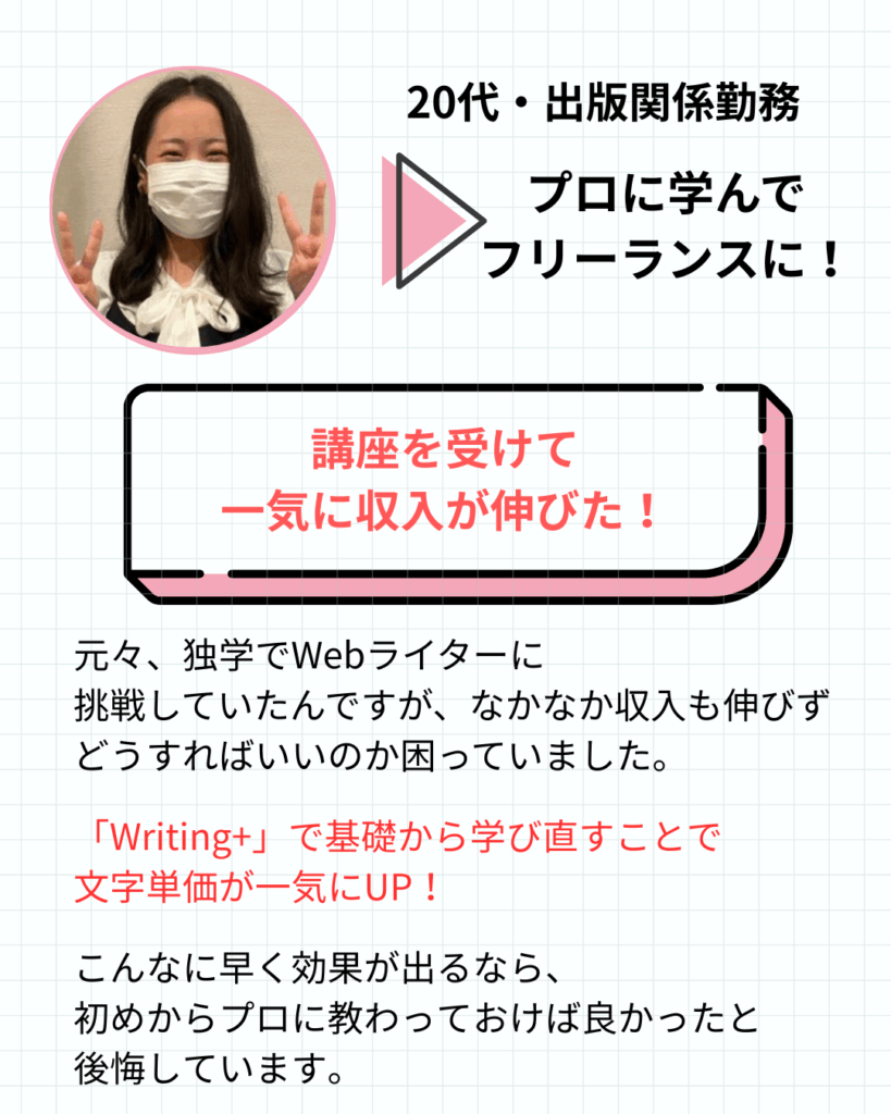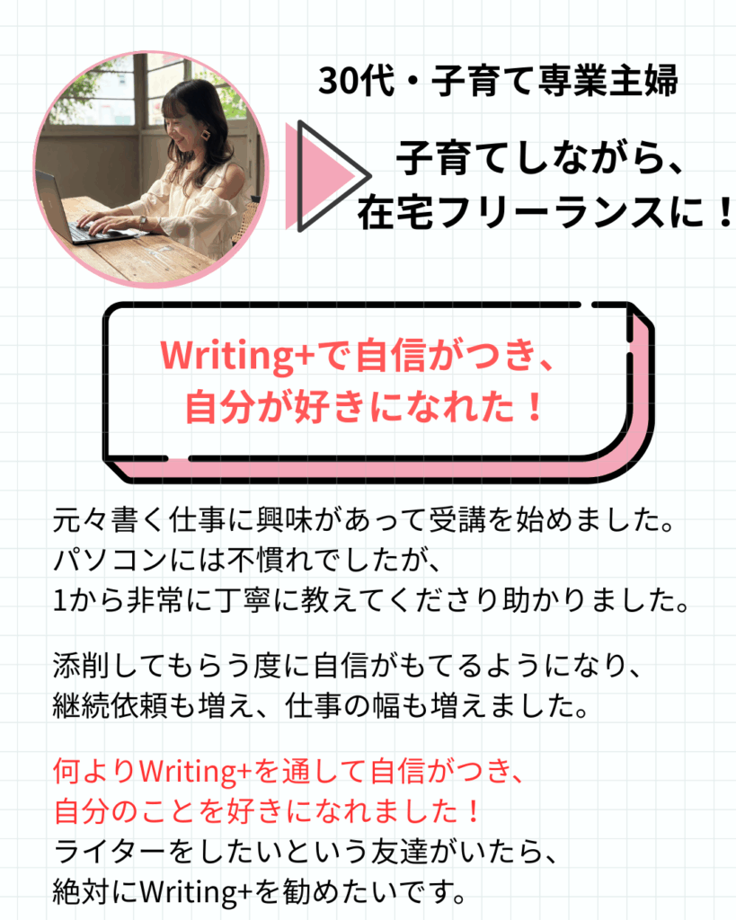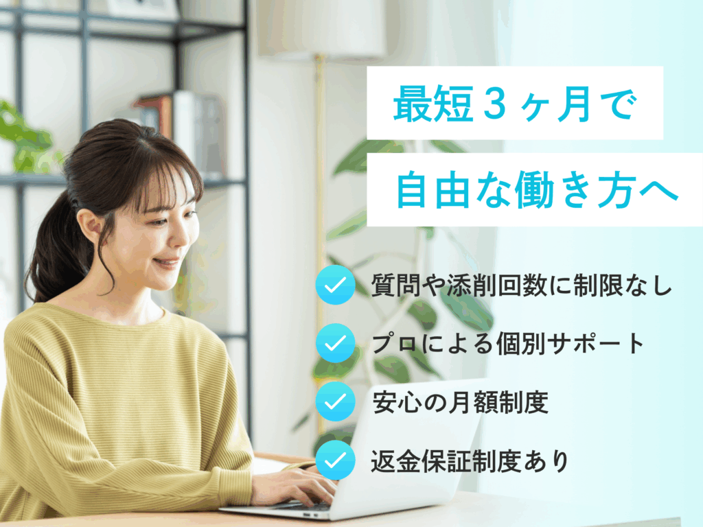 完全初心者からでも、副業やフリーランスとして独立できるレベルまで、「Webライティング」を学ぶことができる完全サブスク制のオンラインスクール。