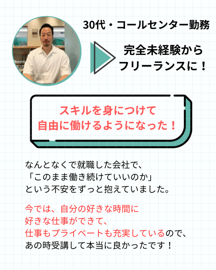 ポートフォリオの作成や案件の受注方法、更には納品物の添削など、スキル獲得から独立までを一貫してサポート。